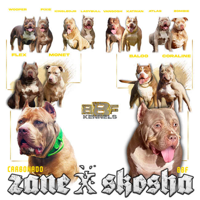 At Bred By Faith Kennels, we take pride in producing XL American Bullies backed by some of the most powerful bloodlines in the game. The Zane × Skosha pairing brings together generational excellence, world-class structure, and unmatched temperament — all rooted in elite pedigrees.